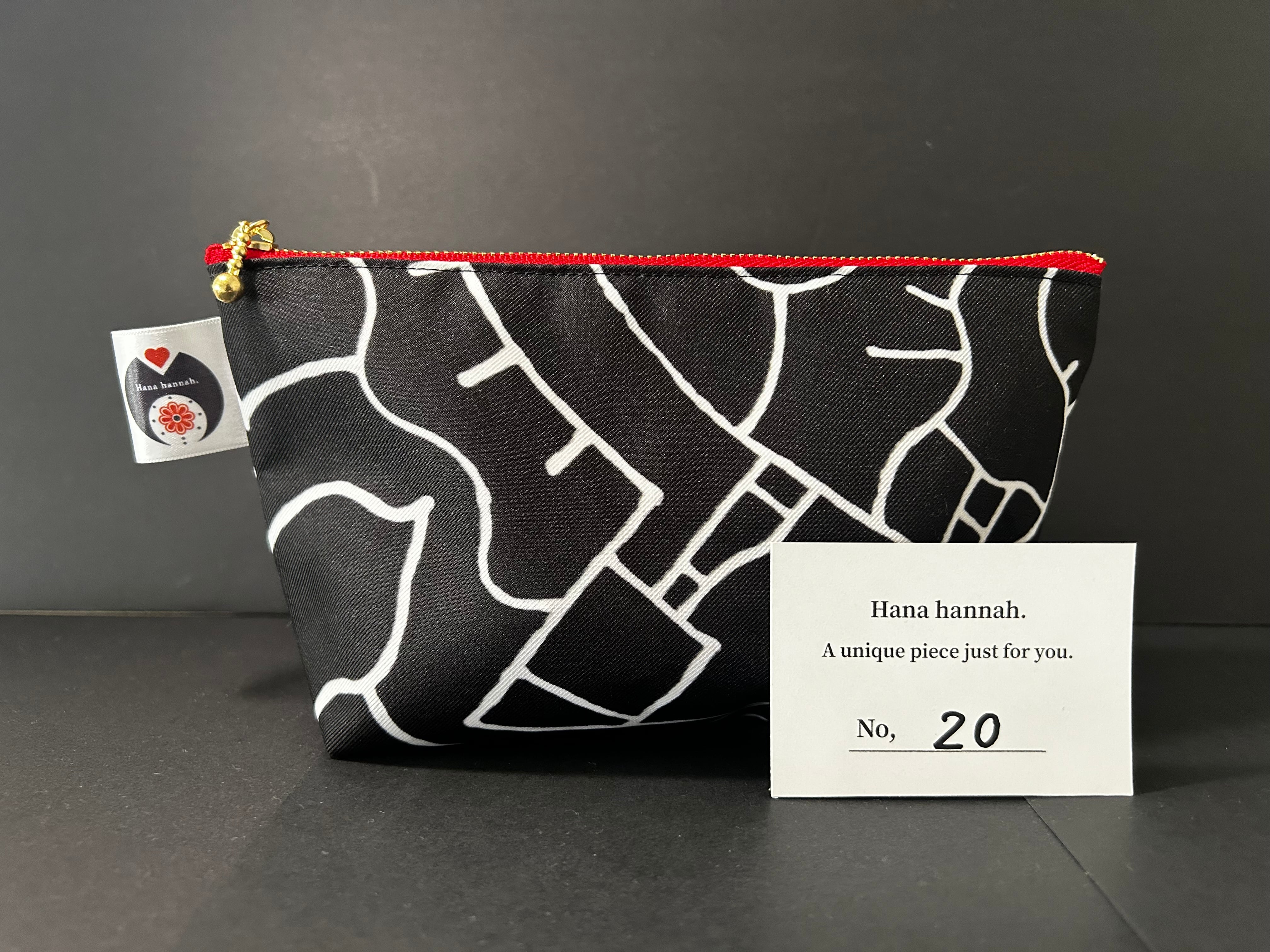下書きなしの一発書きで描かれた、Hana.の抽象アートがプリントされた生地から、丁寧に仕上げました。