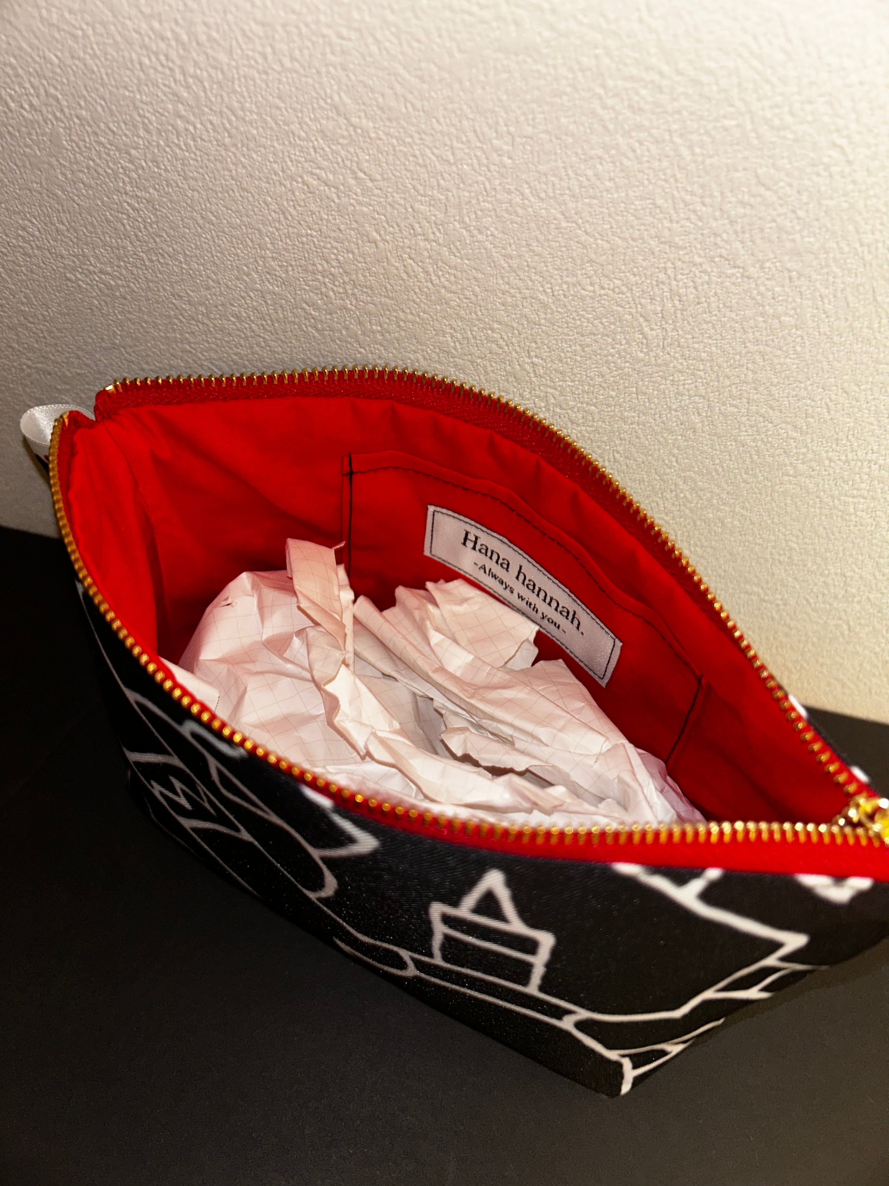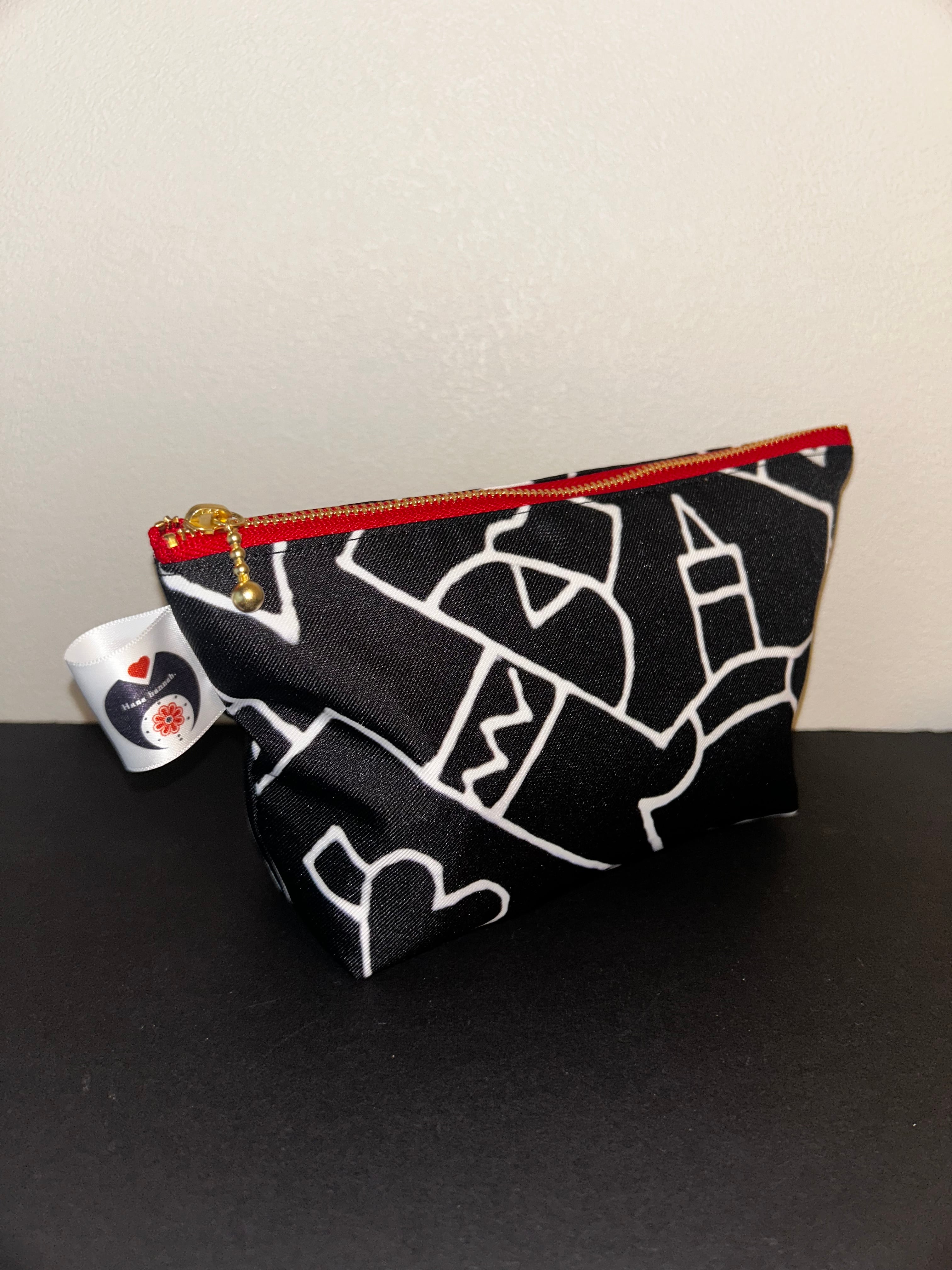 下書きなしの一発書きで描かれた、Hana.の抽象アートがプリントされた生地から、丁寧に仕上げました。